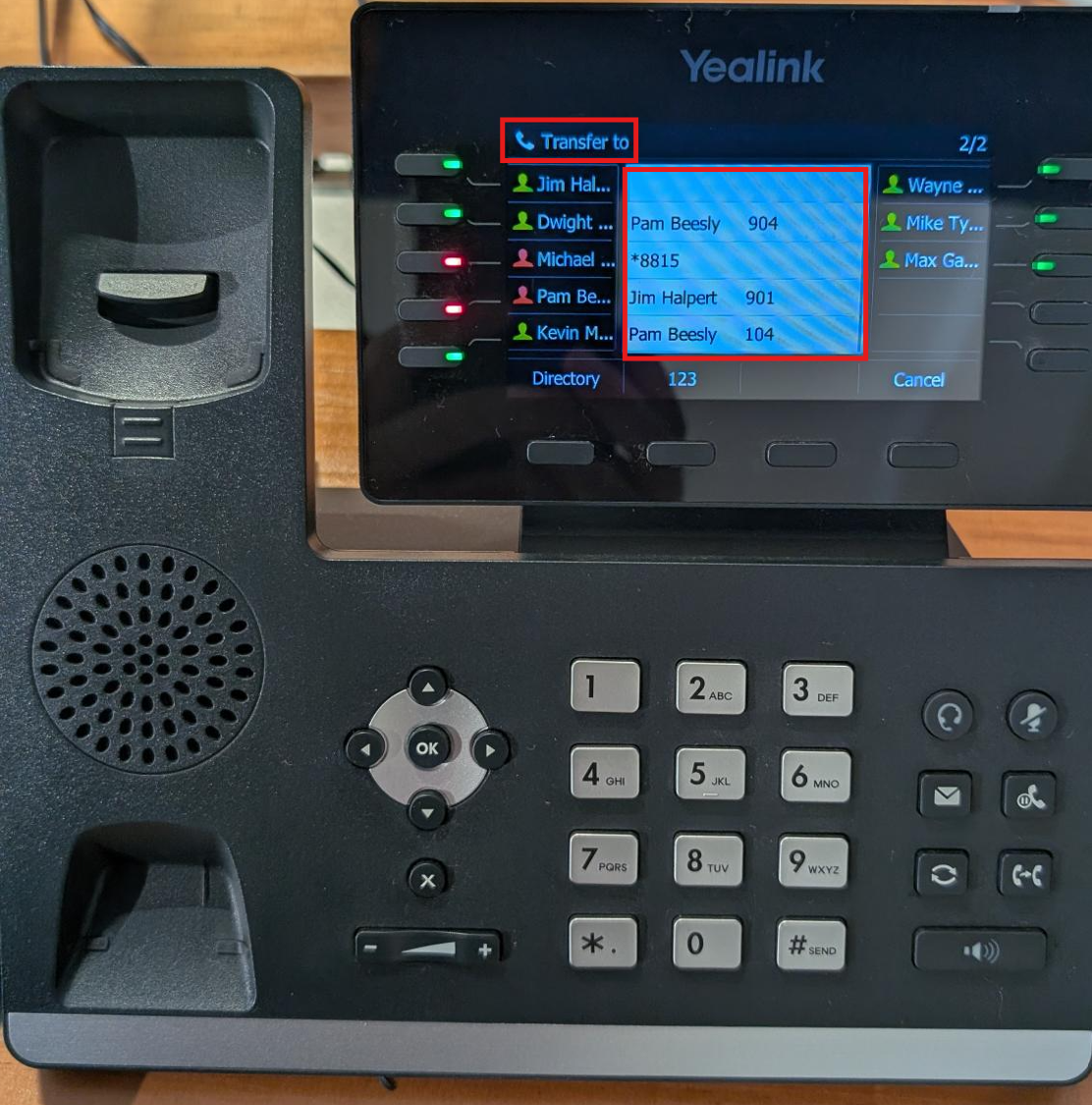 - While speaking with the caller, Agent 1 presses the Transfer button on the Yealink T54W.